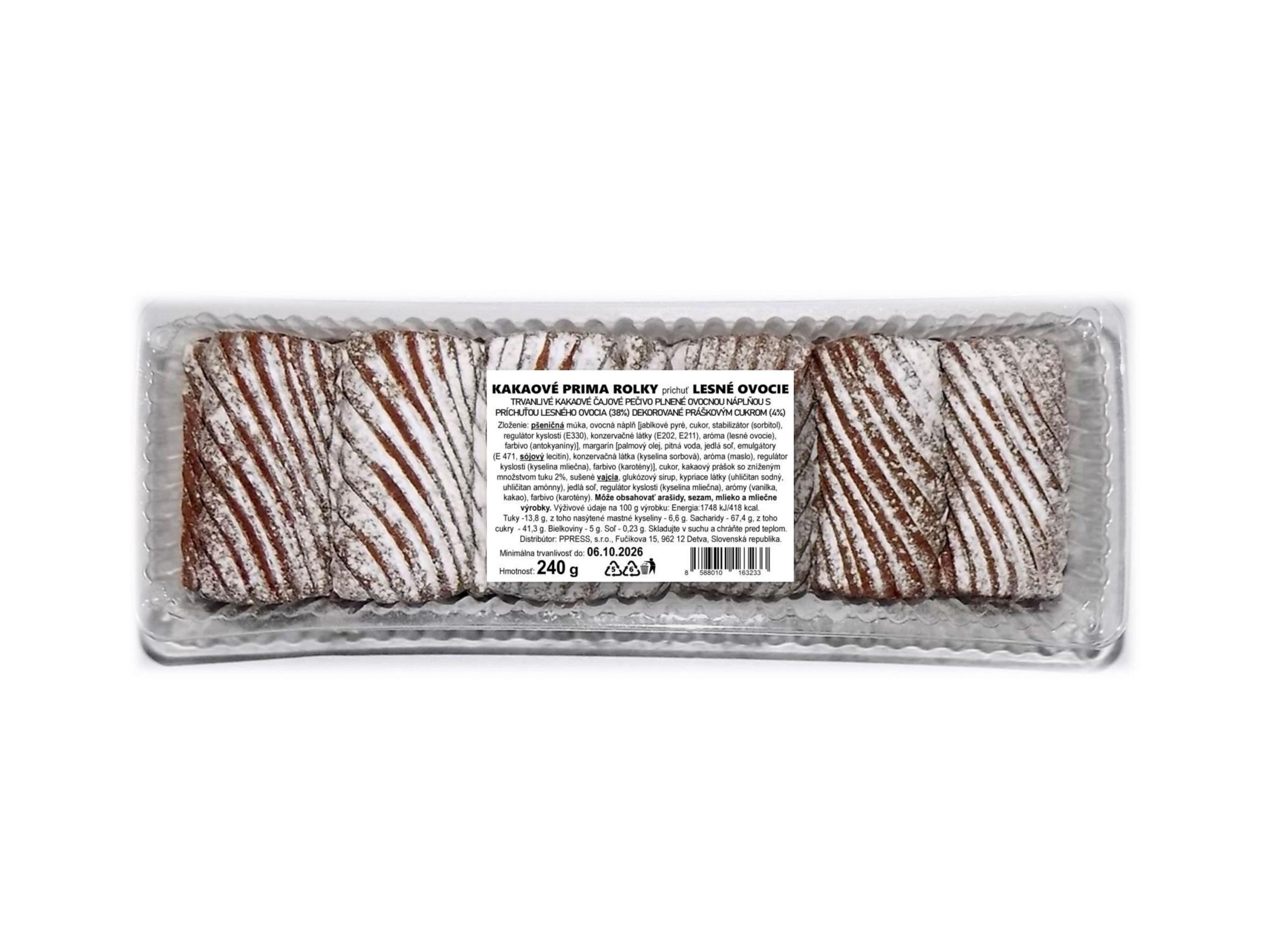Kakaové PRIMA ROLKY lesné ovocie s cukrom 240g/20/